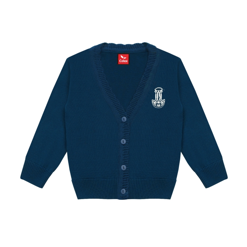 Jaqueta de punt amb botons, estil torera, amb logotip personalitzat al pit. Elegant i bonica, dissenyada per aportar comoditat i un toc cuidat a l’uniforme escolar.