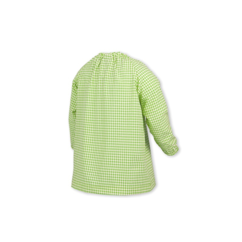 Bata de gomas para los más pequeños, con bies de colores contrastados a juego en cuello y bolsillo. Protege la ropa de pinturas y manualidades, y su diseño cómodo y práctico facilita ponérsela sin problemas. ¡Perfecta para el aula y para dejar volar la creatividad!